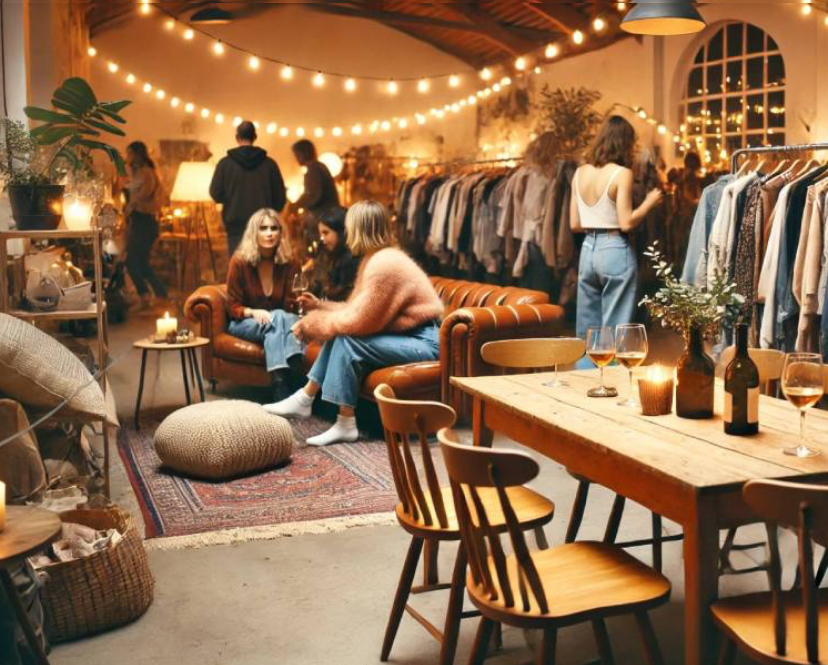Vi sørger for en dejlig atmosfære med musik og hyggelige omgivelser. Du kan nyde et glas vin eller en varm kop kaffe/the, tage en snak med naboen eller veninden og samtidig gøre noget godt for miljøet.